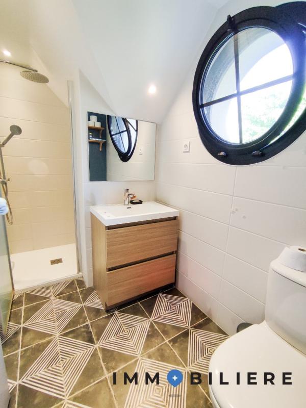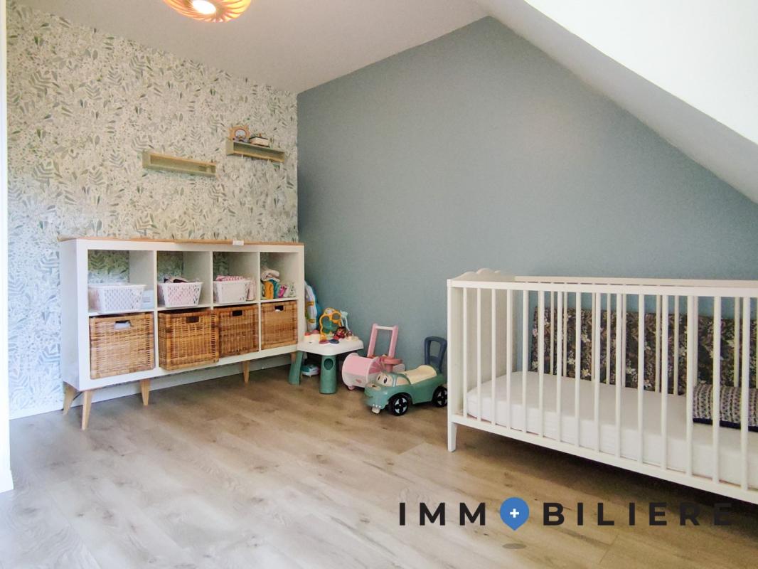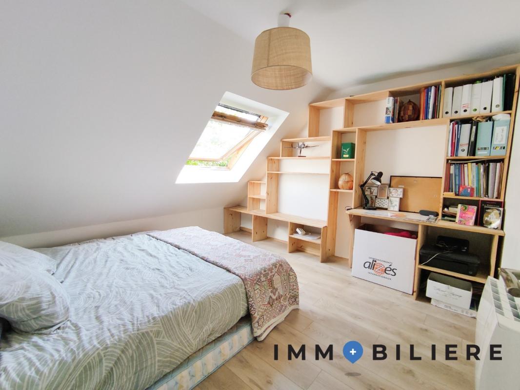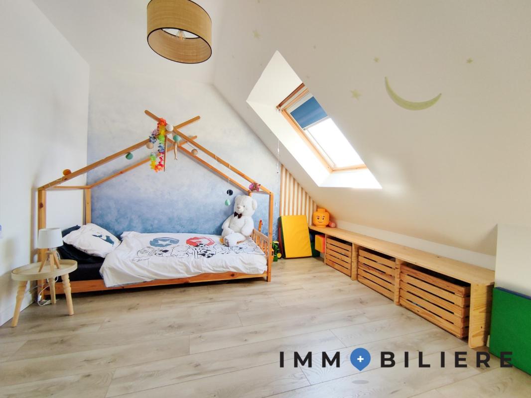 – Au 2ème palier : trois chambres (l’une avec un bureau dressing et grand lit, la seconde avec lit cabane enfant et la 3e vide), une salle d’eau avec WC